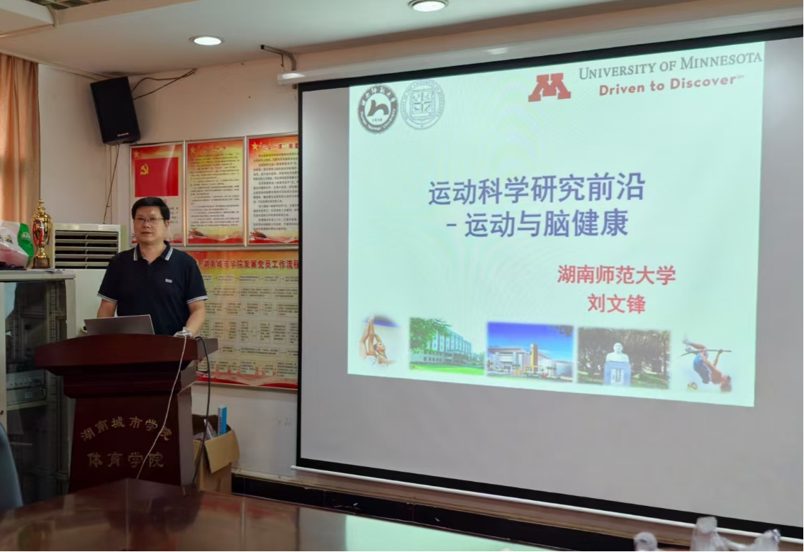 (通讯员 龚莹莹)2025年6月23日,tv盒子软件apk下载特邀湖南师范大学博士生导师刘文锋教授开展学术专题讲座,讲座的主题为《运动科学研究前沿——运动与脑健康》。讲座由tv盒子软件apk下载院长李志宏主持,学院全体教师参加。