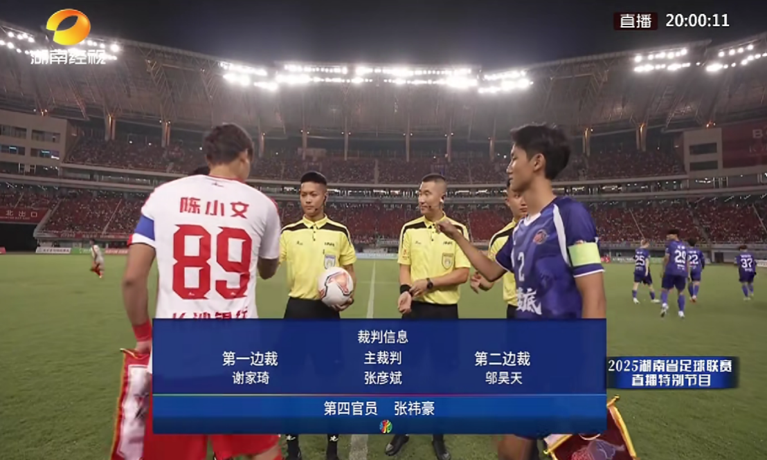 9月7日晚的揭幕战中,张彦斌老师展现了作为一名职业裁判员的高超技艺和严谨态度。面对40877名观众的现场支持和众多参赛运动员的热情注视,其优秀的执法表现,展现出良好的气场和控制能力,确保了比赛的公正性与流畅进行,赢得了全场观众和参赛运动员的一致好评。经过激烈的角逐,最终,长沙队以2∶0战胜娄底队赢得了湘超联赛揭幕战的胜利。