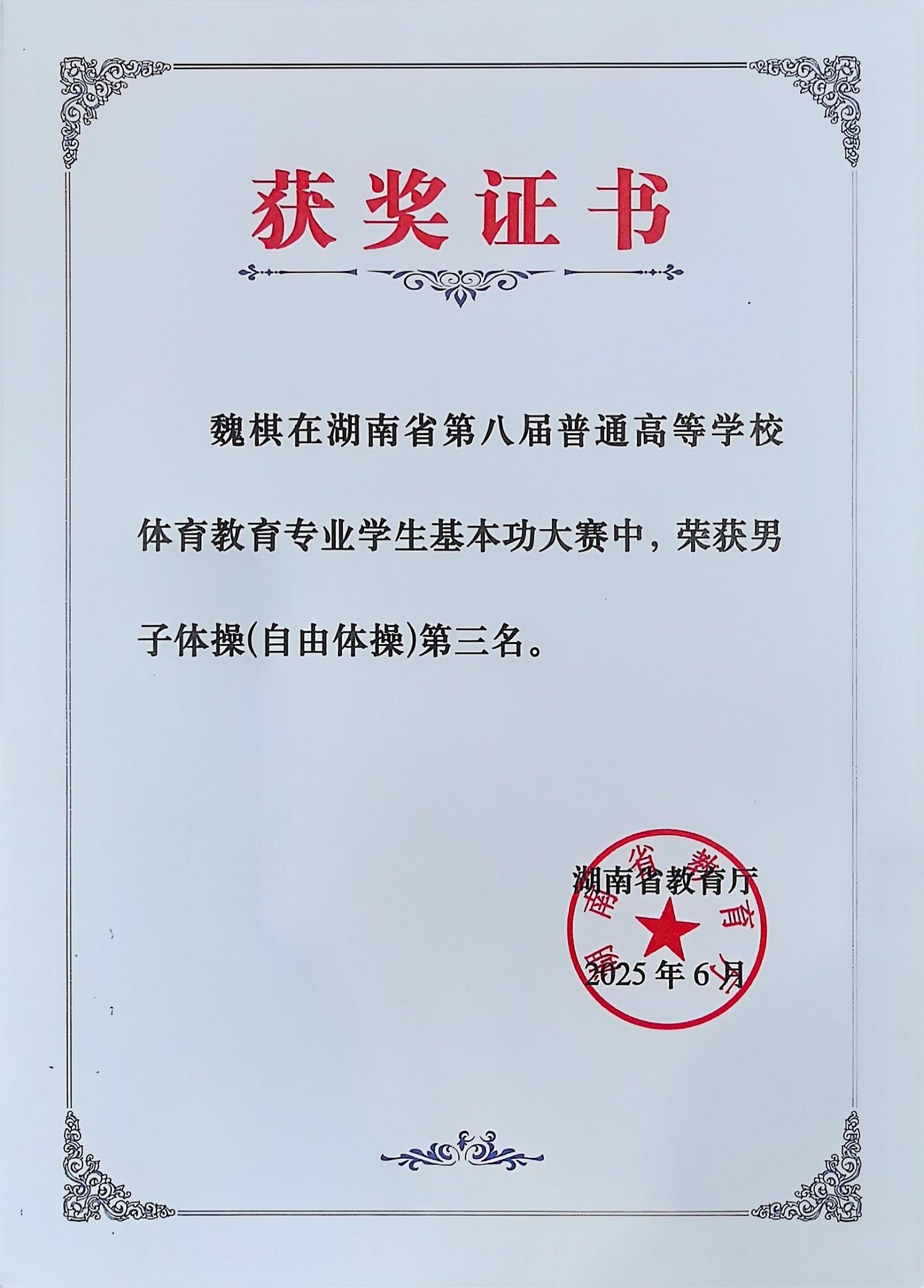 湖南省教育厅关于公布湖南省第八届普通高等学校体育教育专业学生基本功大赛获奖结果的通知正文.pdf