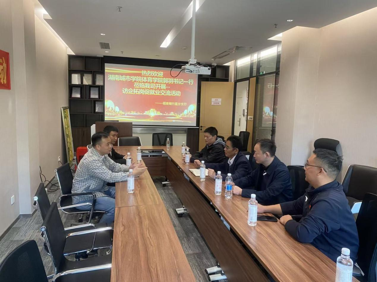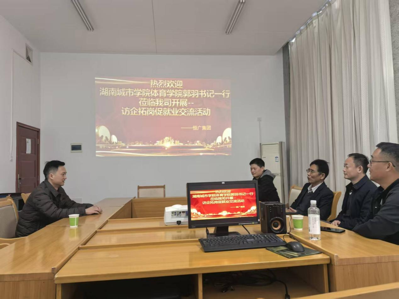 11月30日,郭羽、许进一行走访湖南恒广发展集团有限公司,与蔡无双经理交流。蔡经理表示,随着业务拓展,集团对体育专业人才的需求未来两年将大幅增加,尤其在社区服务与企业文化领域。双方深入探讨了共建实习基地、合作开展健康促进项目等事宜,并初步确立战略合作意向,共促产教融合与人才培养。