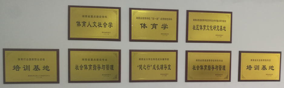 学院拥有湖南省普通高等学校“双一流”应用特色学科; 湖南省普通高等学校一流本科专业、重点专业和特色专业;湖南省普通高等学校哲学社会科学重点研究基地;湖南省社会体育指导员培训基地;体育行业国家职业资格培训基地等10余个省级学科平台。