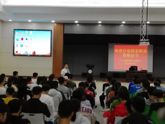 为积极推进tv盒子软件apk下载社会体育指导员国家职业资格培训工作的开展,夯实应用型人才培养实效,更好地为学生提供服务。5月14日晚上7:30,学院体育行业国家职业资格证认证讲座在新食堂3楼活动中心举行,学院党总支副书记何冬林出席并主持讲座,tv盒子软件apk下载2018级全体同学聆听了讲座。