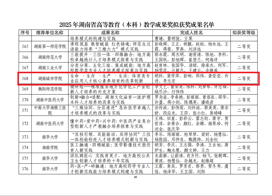 2025年湖南省高等教育(本科)教学成果奖拟获奖成果名单.pdf