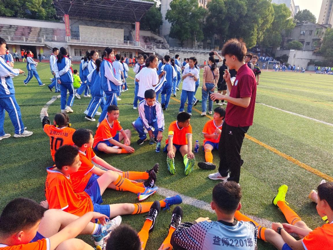本次活动由足球专业老师李伟带队,19名足球专选班同学作为校园足球科普志愿者,深入到益阳师范附属学校每一个班级,通过专题讲座、主题宣讲、专项培训等形式传播足球文化,传授足球理论知识和足球竞赛规则,指导足球技战术等。