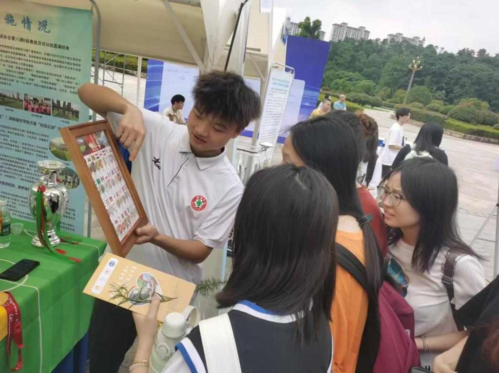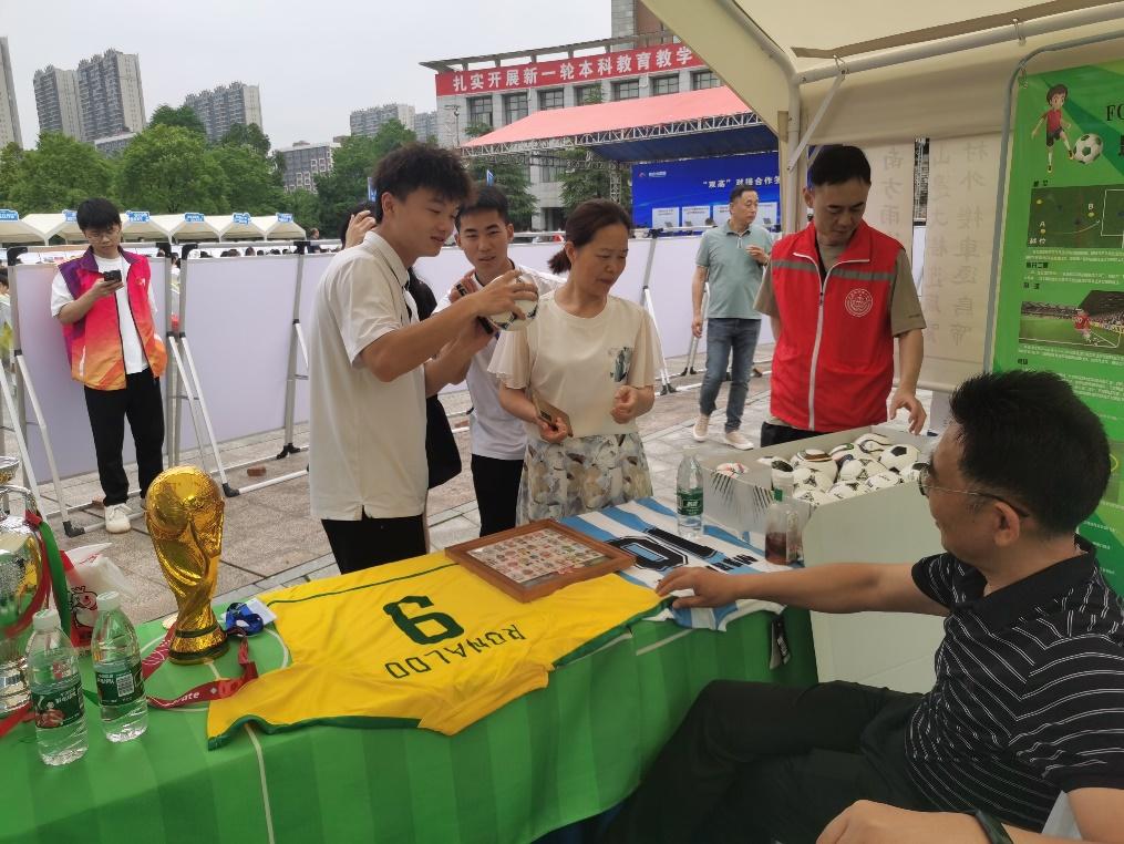 (通讯员:董喆)2024年5月27日,益阳市科技活动周在湖南城市学院举行,依托此次活动平台,湖南城市学院校园足球研究与推广基地开展“足球育人,向美而行”主题科普活动。志愿者向参加活动的同学们展示足球文化,讲述足球故事,科普足球知识,充分发挥足球育人功能,让同学们感受足球之美,运动之美,体育之美。(审核:郭羽)
