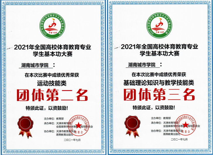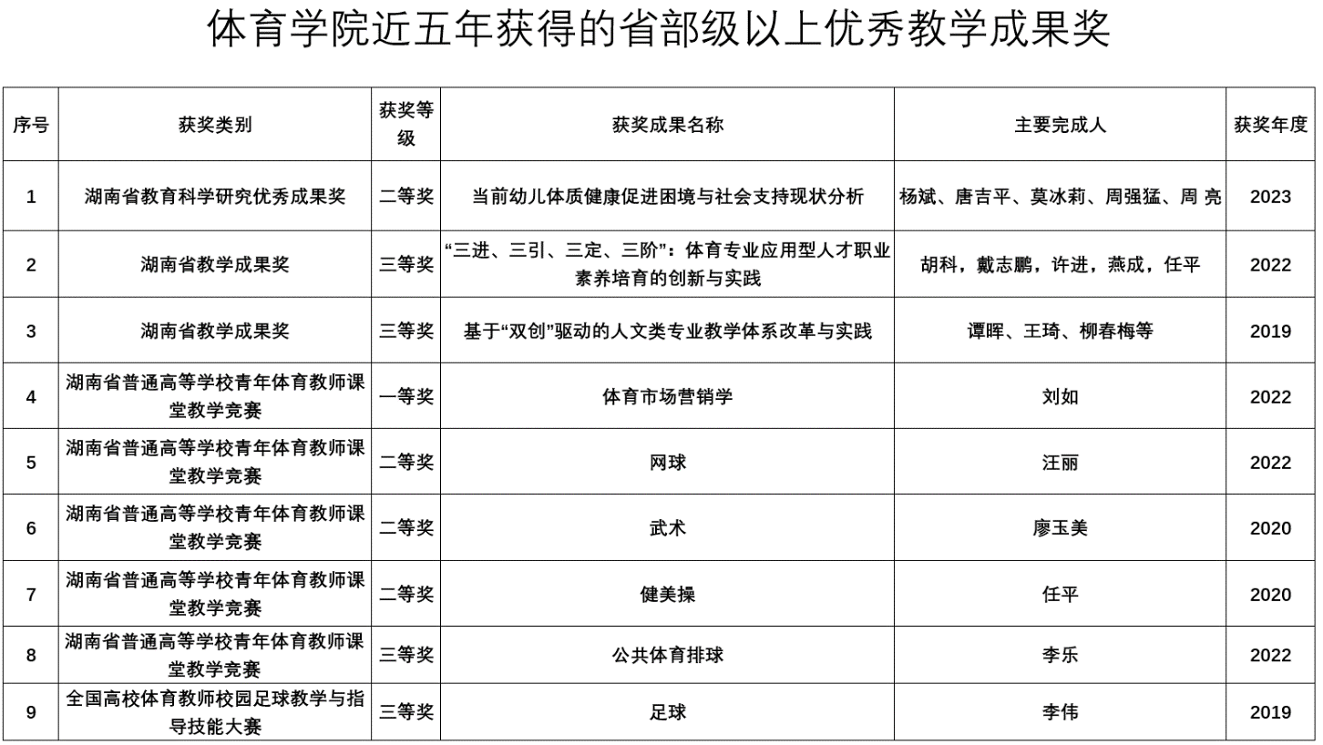 近五年,指导学生参与省级以上比赛,获得国家级一、二、三等奖5项,省级一等奖166项,省级二等奖200项,省级三等奖68项。其中2021年全国体育教育专业学生基本功大赛获得团体总分二等奖、运动技能类团体二等奖、基础理论知识与教学技能类团体三等奖,专业基础理论综合第六名,田径和跳绳两个单项第一名的优异成绩;2023年全省第七届体育教育专业学生基本功大赛中获得了团体总分三等奖、运动技能竞赛团体一等奖,单项:篮球第一名、体操和田径第三名的优异成绩;培养国家一级运动员9名,立项国家级大学生创新创业项目7项,2024年在第十七届国际先进机器人及仿真技术大赛中荣获体育与运动仿真组二等奖,全国大学生体育产业创新创业大赛“网球教学手杖”等作品荣获一、二、三等奖3项。近5年毕业生就业率均稳定在96%以上。学生考上中央民族大学、湖南大学、北京体育大学,上海体育大学、首都tv盒子软件apk下载、华南师范大学、湖南师范大学等高校硕士研究生130人,其中,2019届毕业生钟春丽、邱艳萍,2020届毕业生余芬和2021届毕业生文希理均考取了上海体育大学和华中师范大学博士研究生。
